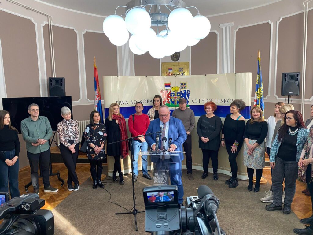 Povodom 20 godina postojanja kamernog orkestra Amoroso gradonačelnik Leskovca Goran Cvetanović je danas u Svečanoj sali skupštne Grada Leskovca poredio prijem violinisti Stefanu Milenkoviću i kamernom orkestru Amoroso.