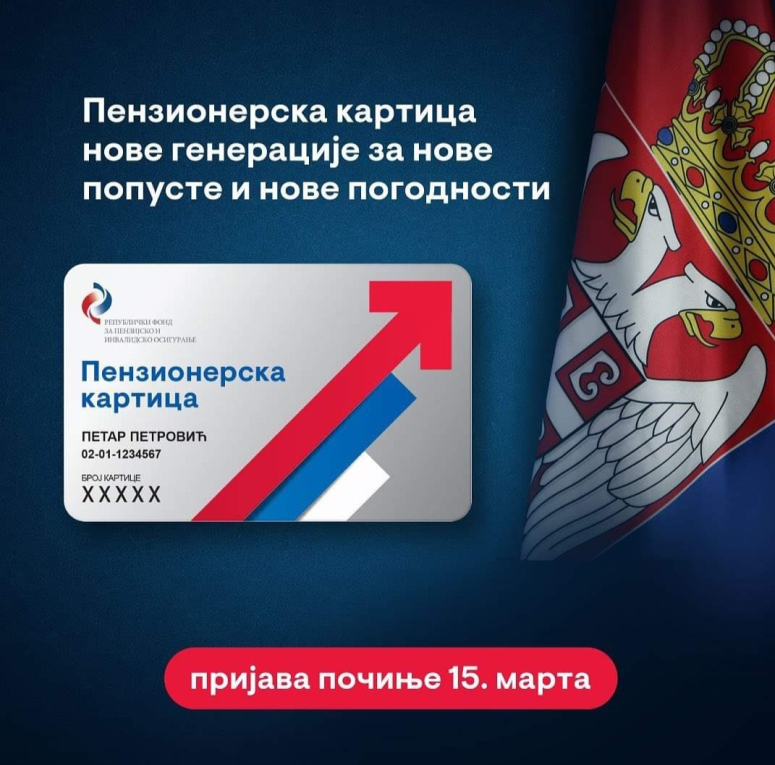 Nakon što je predsednik Republike Srbije Aleksandar Vučić najavio izradu penzionerskih kartica koje će našim najstarijim sugrađanima omogućiti brojne pogodnosti, danas 15.3.2023. započeta je prijava za ostvarivanje prava na istu.