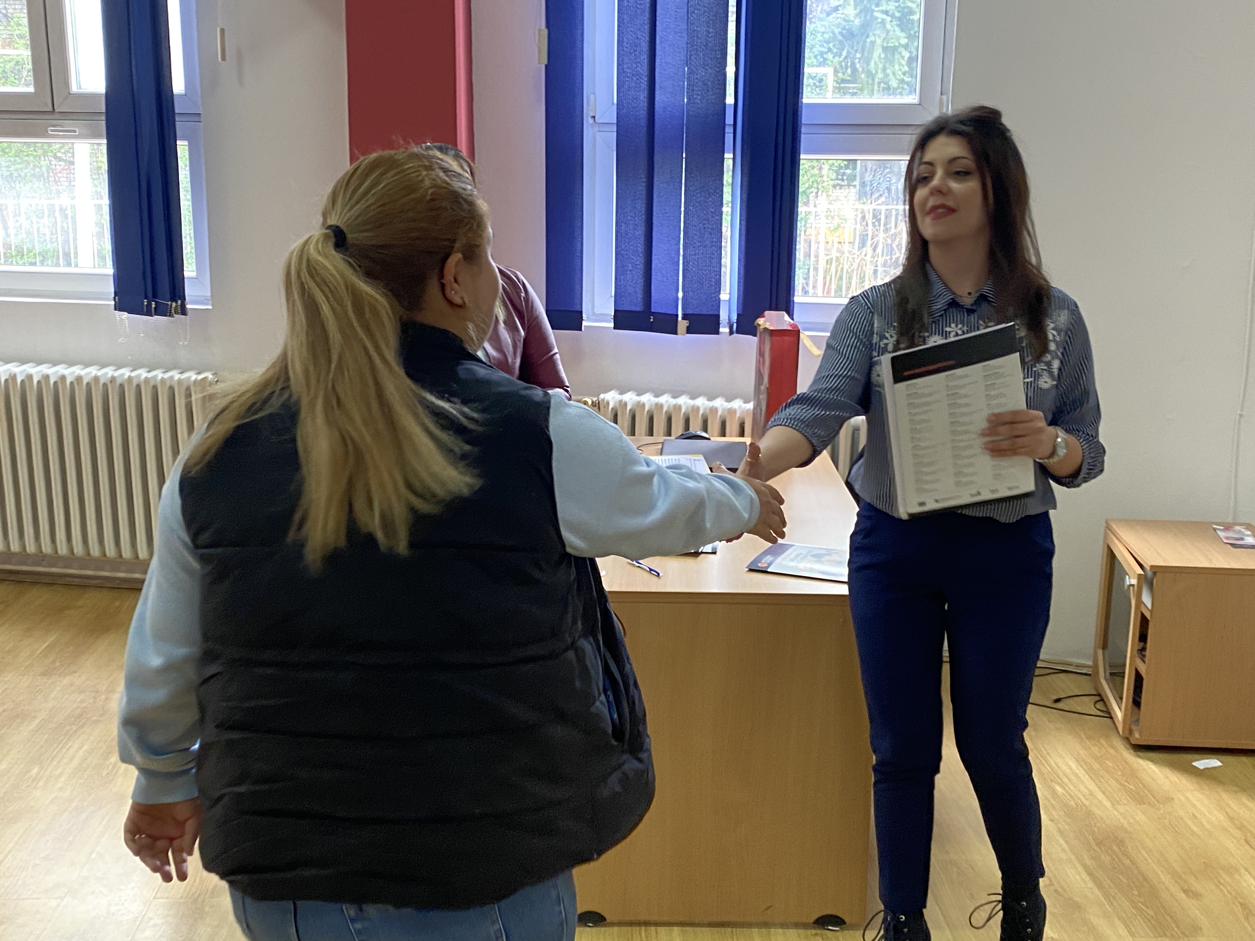 Aleksandra Bislimović, diplomirani ekonimista, završila je kurs Nemačkog jezika, i obratila se isped grupe romkinja koje su završile obuke i kurseve. Ona se zahvalila organizaciji ROSA na odličnoj saradnji, na ukazanom poverenju i pliliku da besplatno završe kurseve i obuke.