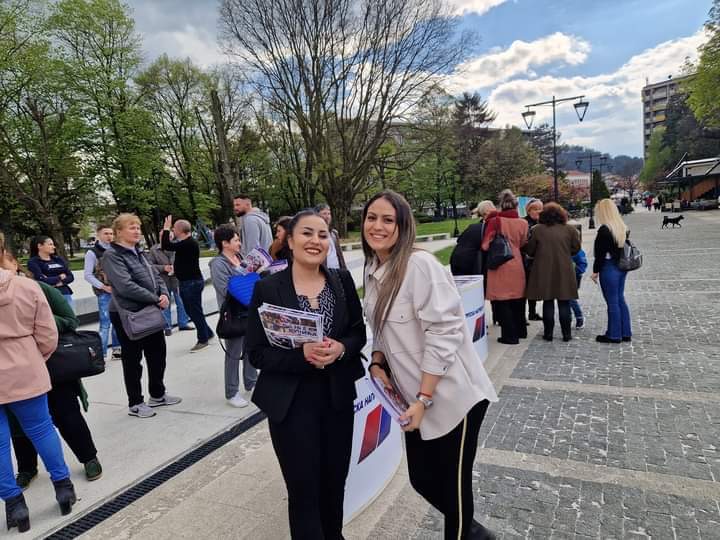 U centru Leskovca na gradskom trgu novi broj SNS Informatora prezentovala je danas mlada aktivistkinja ove stranke Zekija Useinović.