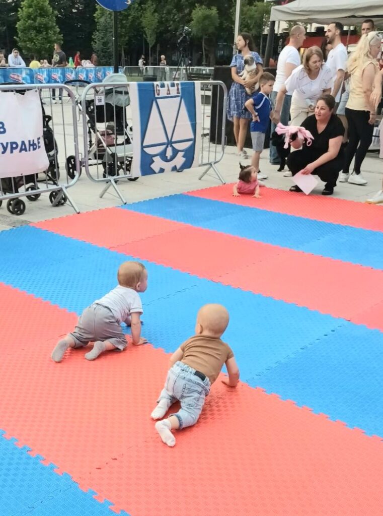 U okviru julskih manifestacija „Leskovačko leto“ i „Leskovački karneval“ na prilagodjenom prostoru lepog leskovačkog Centralnog trga prvog dana vikenda,osmog jula tekuće goidine, održana je prva voma zanimljiva „Bebi trka“ puzanje dečice starosne dobi od 3 do 12 meseci…