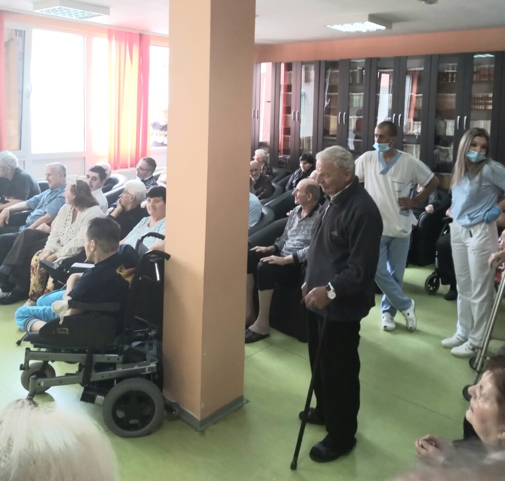 Ovo druženje starih umetnika članova „Kluba prijatelja starih“ Udruženja penzionera iz Leskovca sa stanarima Staračkog doma imalo je humanitarni karakter.