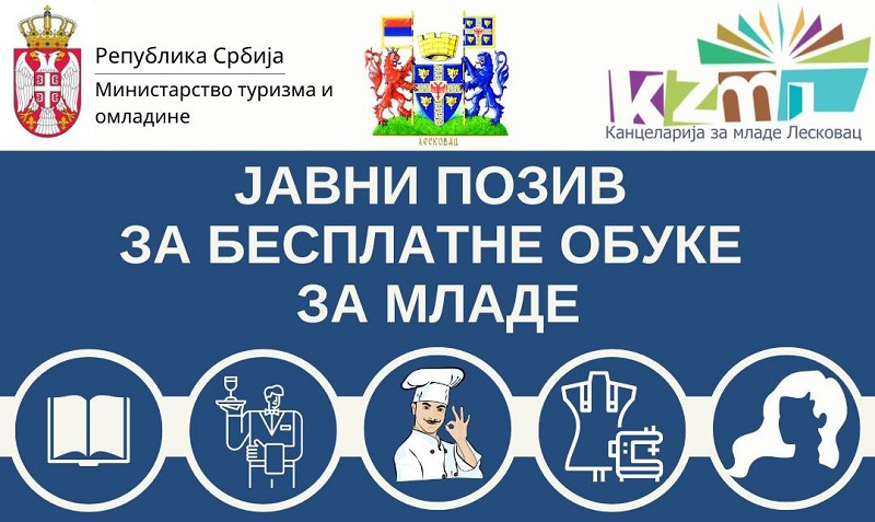 Grad Leskovac, Kancelarija za mlade grada upućuju JAVNI POZIV ZA BESPLATNE KURSEVE/OBUKE ZA MLADE sa teritorije grada Leskovca u sklopu projekta „Nova znanja – nova šansa”, koji finansira Ministarstvo turizma i omladine Republike Srbije.