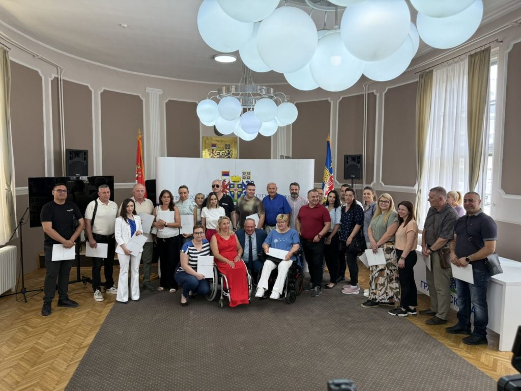 Gradonačelnik Leskovca Goran Cvetanović pre podele ugovora u svom obračanju kazao je da lokalna samouprava predano radi na poboljšanju ekonomskih i socijalnih prava osetljivih kategorija stanovništva.