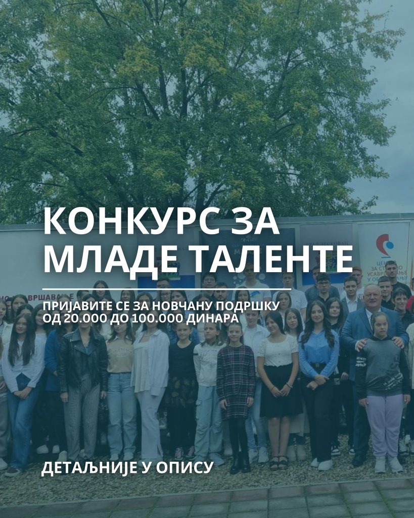 Kancelarija za mlade Grada Leskovca raspisala je konkurs za mlade talente 2025. godine, putem kojeg će biti nagrađeni oni koji su osvajali nagrade na republičkim, međunarodnim takmičenjima i olimpijadama, ali i za ostvarene odlične uspehe tokom studiranja.