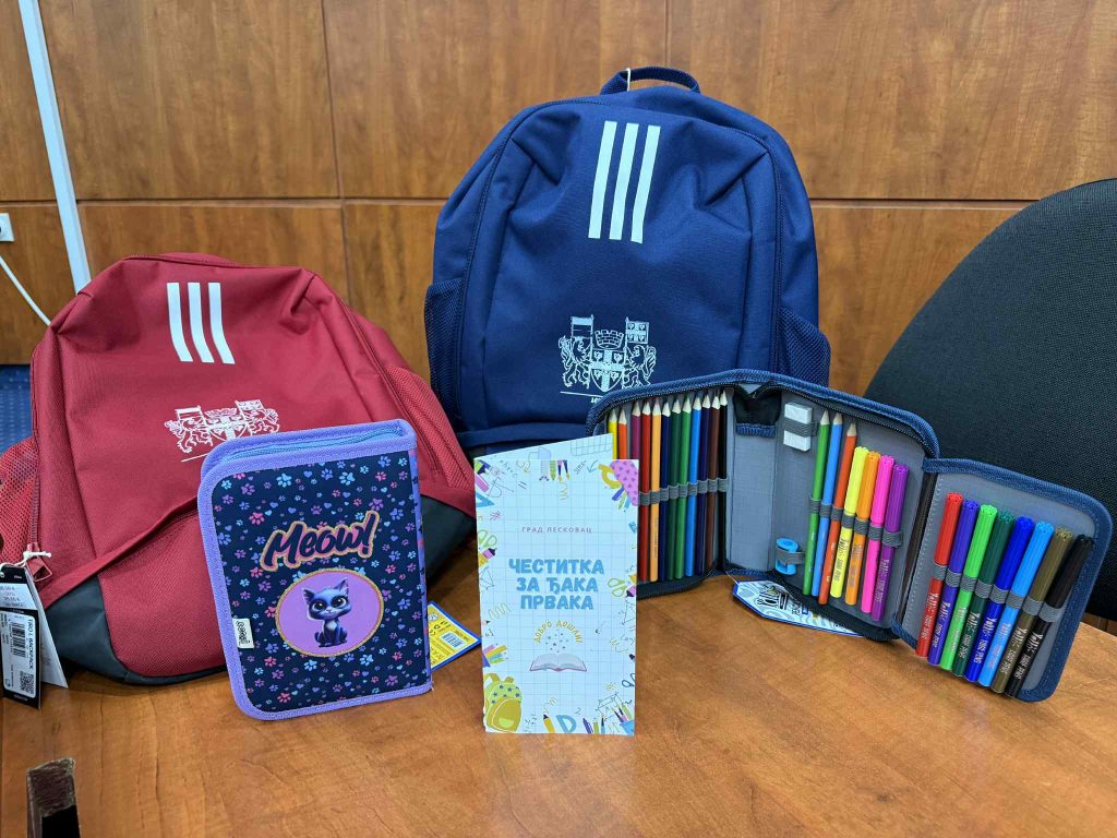 Kao podsticaj za polazak u prvi razred, ukupno 1.122 đaka na teritoriji grada Leskovca dobilo je na poklon rančeve i pernice sa priborom.