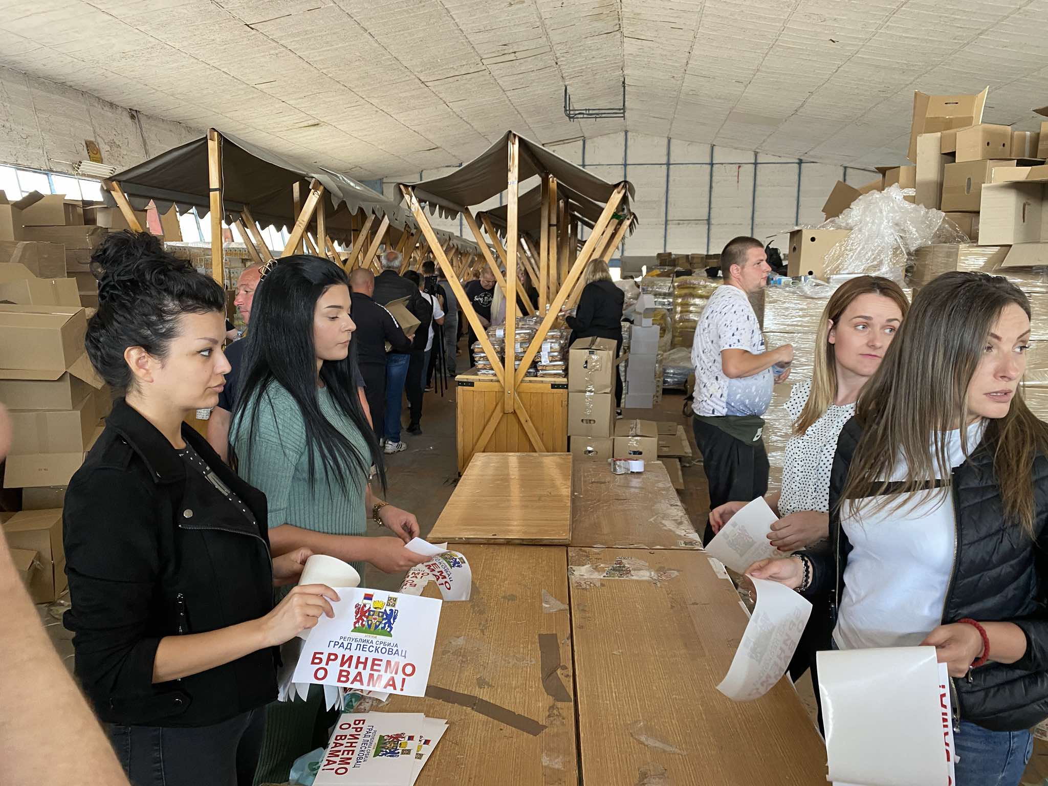 U Leskovcu je počelo pakovanje 32.000 paketa pomoći u okviru drugog kruga podele za sve penzionere i socijalno ugrožene. Rebalansom budžeta sredstva za ovu namenu povećana su na 103,8 miliona dinara.