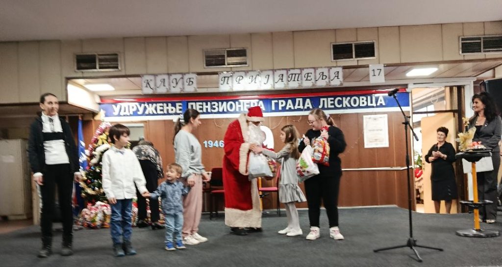Mališanima iz Udruženja „Duga–MNRO“ – Leskovac, odnosno dečici sa zastojima u psihofizičkom razvoju, Deda Mraz – čuveni leskovački poslastičar Jorka uručio je prigodne poklone i paketiće.