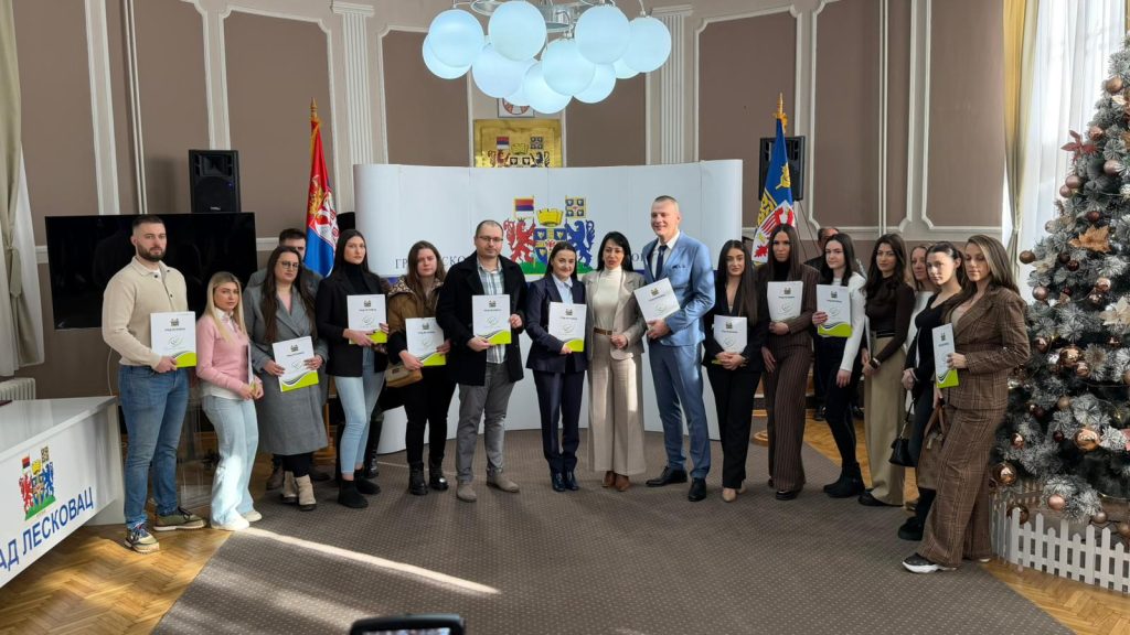 U Svečanoj sali Grada Leskovca danas su uručena 24 ugovora za obavljanje stručne prakse mladim akademskim građanima, među kojima su i visokoobrazovani sa prosečnom ocenom 9 i više. Sredstva za realizaciju ove mere, koja se sprovodi kroz Lokalni akcioni plan zapošljavanja, u iznosu od 15 miliona dinara obezbeđena su iz budžeta Grada Leskovca, a praksa će se obavljati u organima gradske uprave, javnim ustanovama i preduzećima.